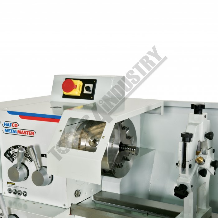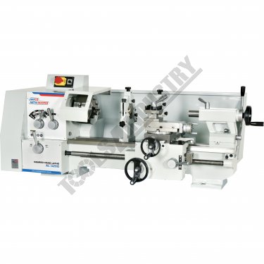 - Geared headstock for quick change of spindle speeds