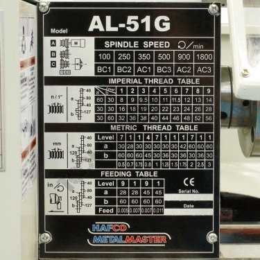 AL-51G has a quick-change gearbox for easy thread cutting operationsCan also cut 9.5 and 11.5 threads per inch