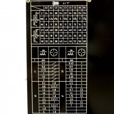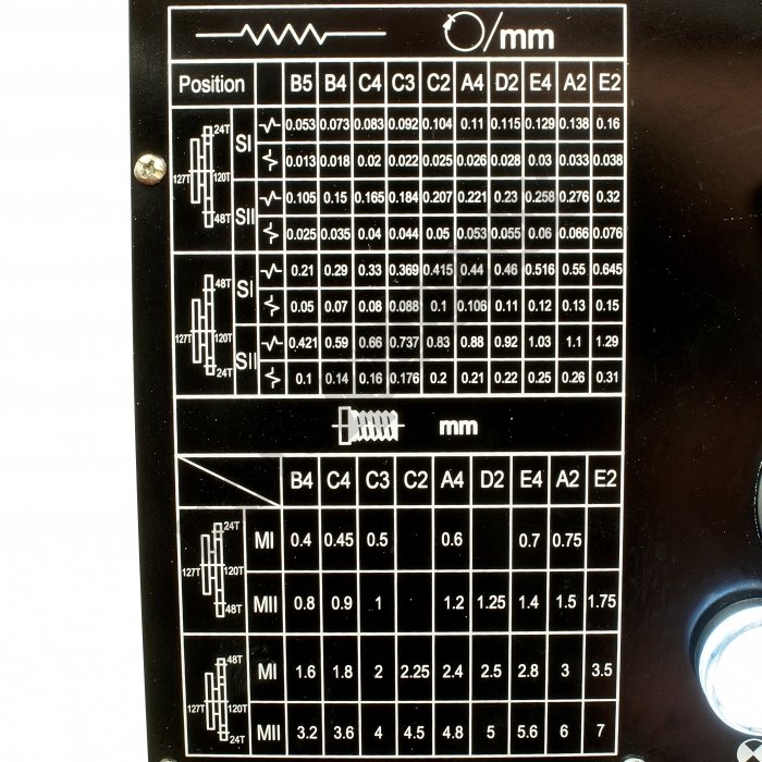 - Imperial Longitudinal Feed (Z-Axis)inch/rev