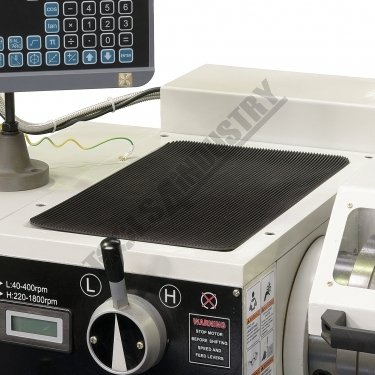 - Electronic infinitely variable inverter spindle speed with digital readout