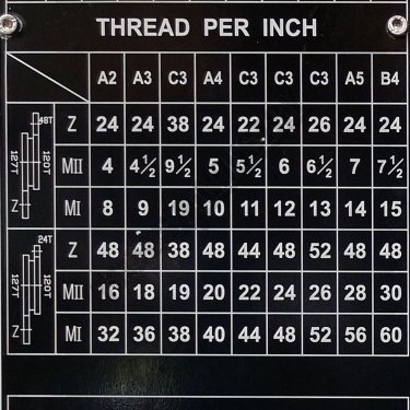 - Imperial Longitudinal Feed (Z-Axis)inch/rev