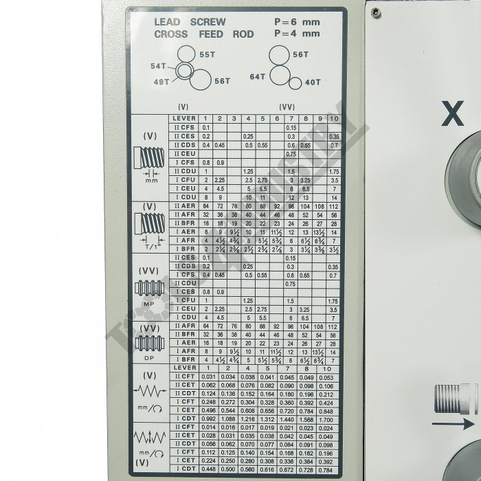 - Imperial Longitudinal Feed (Z-Axis)inch/rev