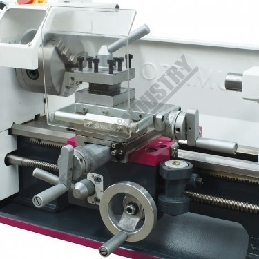 Features such as the electric variable speed control, manual or powered leadscrew feed, metric & imperial thread cutting and an extensive range of accessories. The lathe comes supplied with 100mm diameter three jaw self-centring chuck, tailstock centre and service tools.