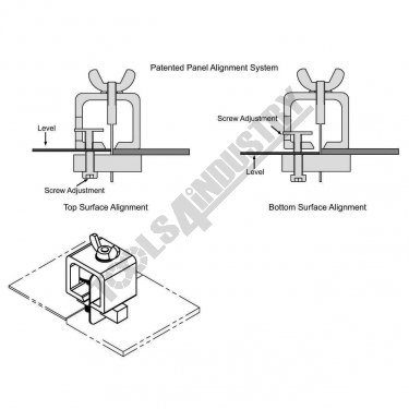 Level adjustment allows flat alignment of top or bottom surface of panels.